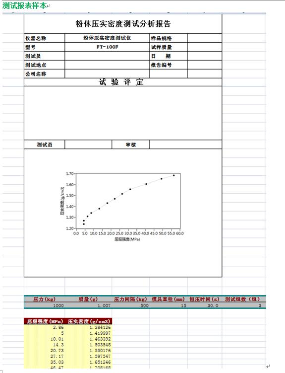 8. PC軟件可以獲得應(yīng)力、粉體密度、時間、粉體屈服強度關(guān)系;過程數(shù)據(jù)的分析和曲線圖譜.
